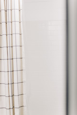 The two bathrooms in this house are my favorite color scheme: black, white, and wood. Sweet art pieces and pretty shower curtains are the cherries on top in these beautiful spaces.